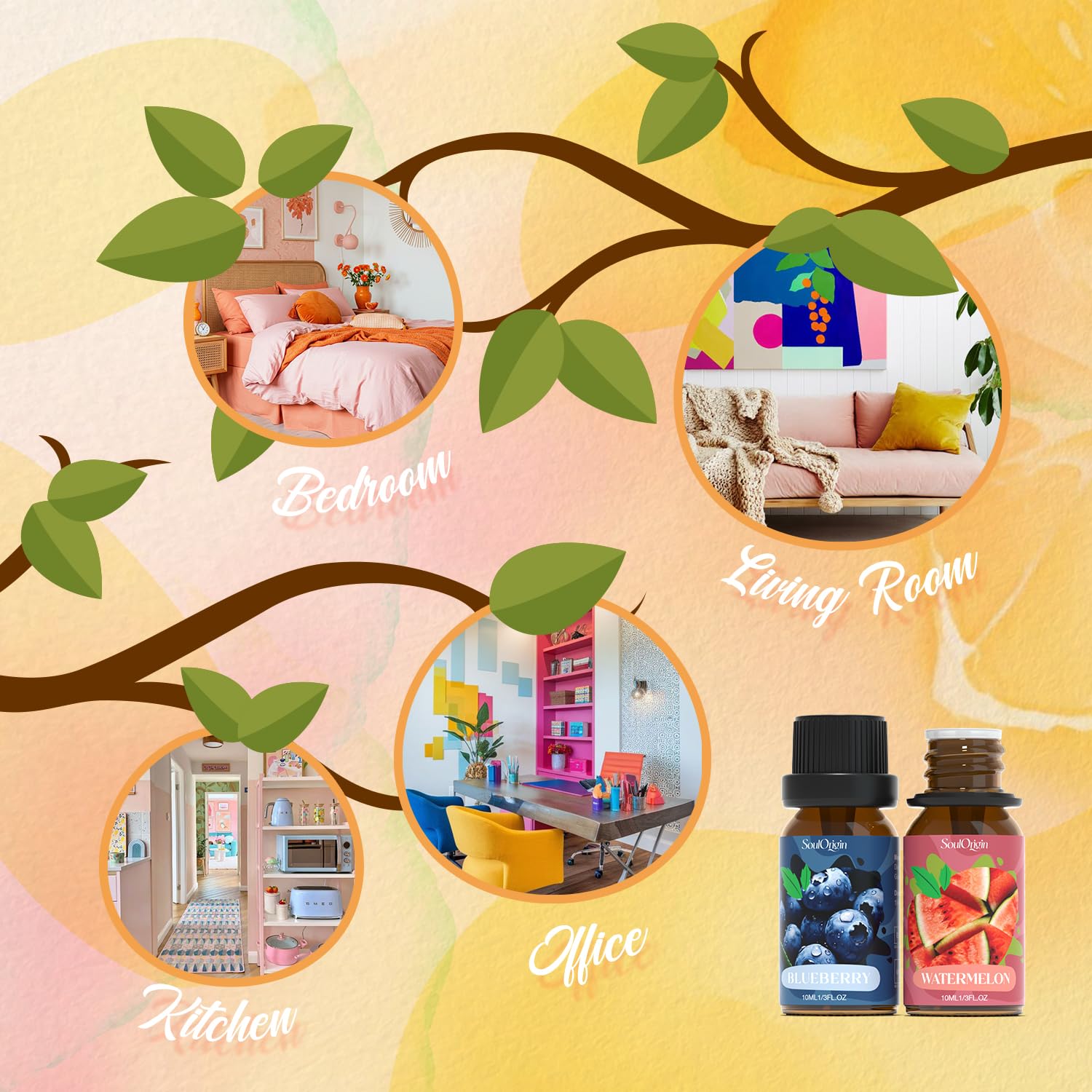 - Brighten Your Space: Add a splash of sunshine to your day with fruit essential oil blends that fill your home with cheerful, uplifting aromas. Perfect for creating a joyful, energizing environmentâthese fruity scents are ideal for kitchens, living rooms, bathrooms, and anywhere you want to feel refreshed.