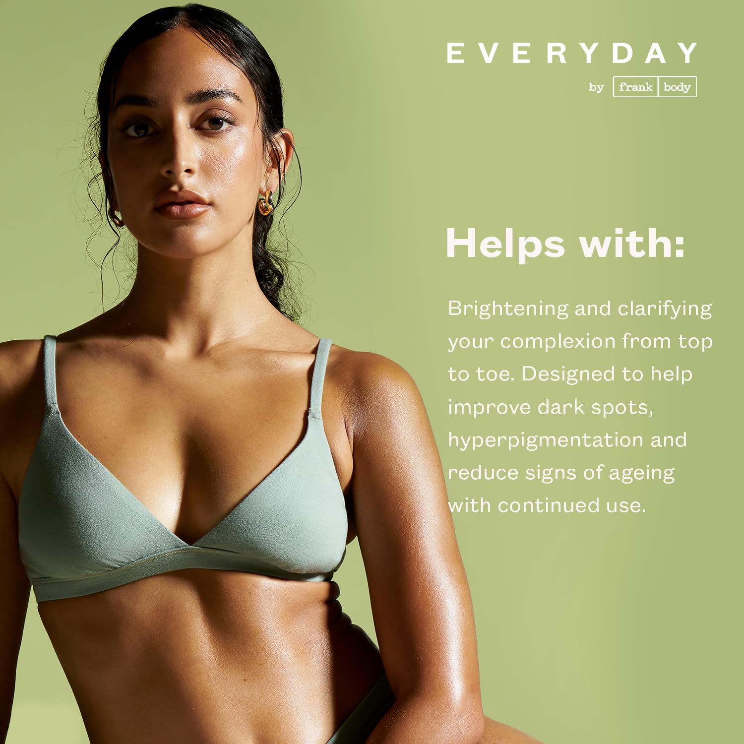 - ABOUT EVERYDAY BY FRANK BODY: Everyday by frank body is a new kind of everyday essential; clean, active and free from 20 common toxins. Known for our cruelty-free and vegan products, frank body creates clean, effective, affordable skin and bodycare.
