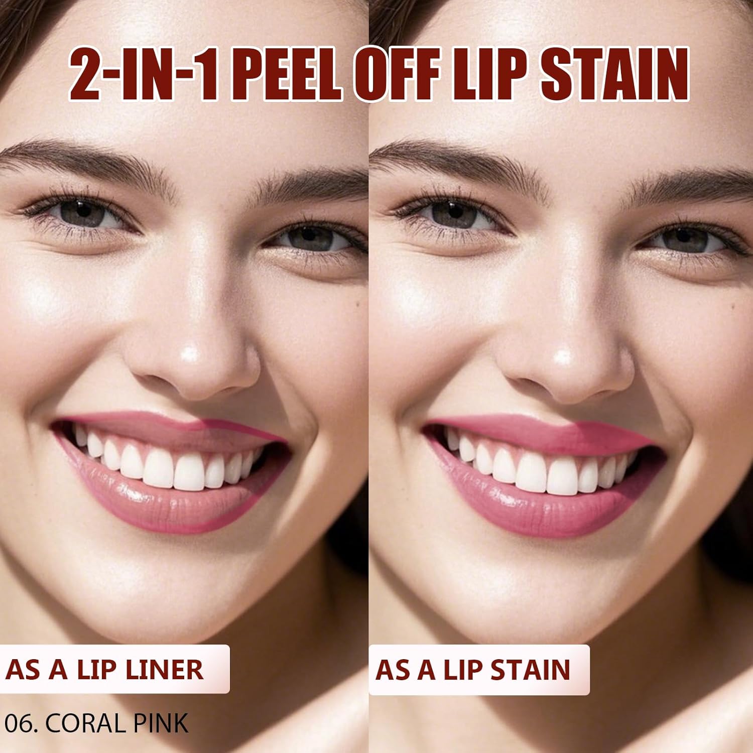 Lip Liner Stain Peel Off with Tweezer, Long Lasting Matte Lip Tattoo, Highly Pigmented Color Lip Makeup, Waterproof, Transfer-proof Lipstain for Women, for All Skin Types CORAL PINK