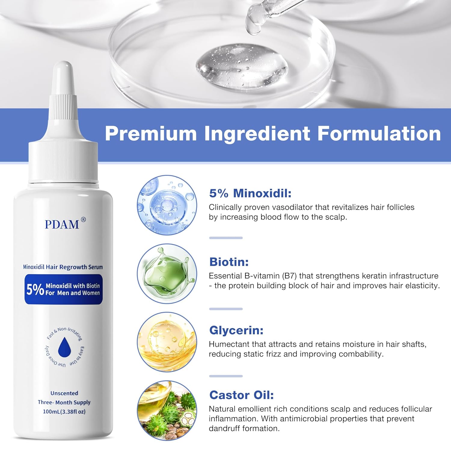 5% Minoxidil for Men Hair Growth Serum - Minoxidil for Women Serum with Biotin for Thicker & Healthier, Topical Minoxidil for Men Restore Fuller Beard