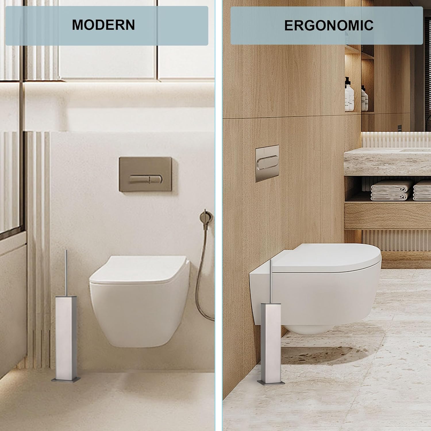 - Premium 304 Stainless Steel Toilet Brush Set:Crafted from 1mm-thick 304 stainless steel, this toilet brush and holder set delivers exceptional corrosion resistance. The durable combination of toilet bowl brush and holder ensures long-lasting performance.