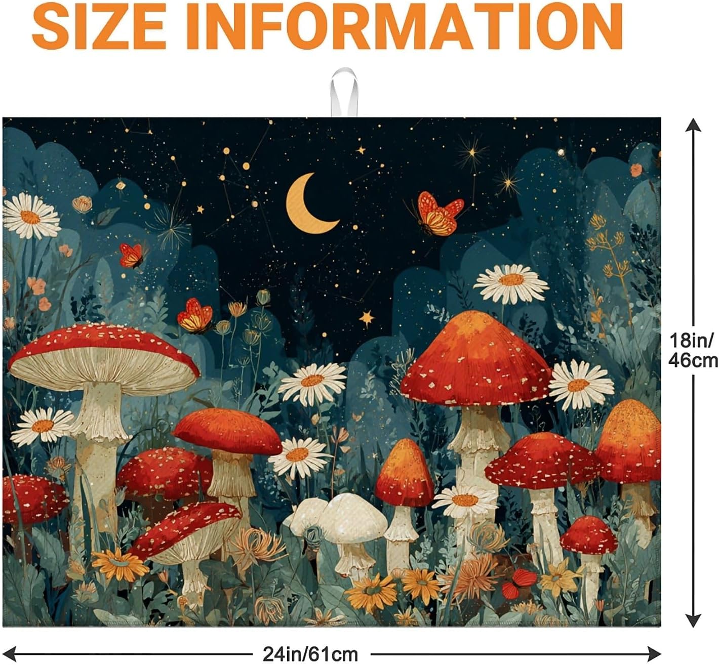 Dish Drying Mat For Kitchen Counter, Black Mushroom Microfiber Absorbent Dish Drainer Rack Pad Reusable Large 18x24in Drying Mat