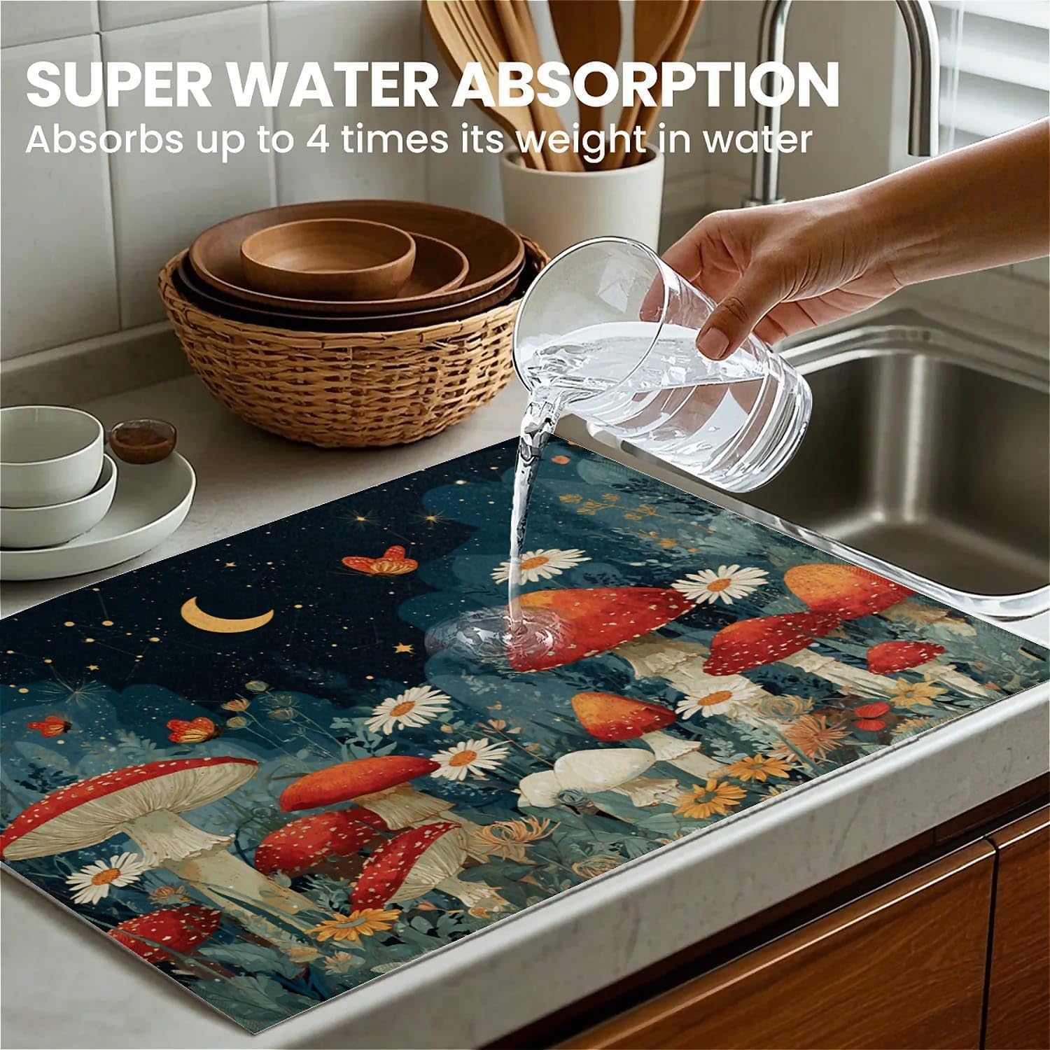 - 【Lovely Home Gift】This beautiful decorative dish drying mat for kitchen countertops will surprise your family and friends, a perfect housewarming gift for a new home or renovation, and a perfect gift for Christmas, Mother's Day, birthdays, Thanksgiving, and various other occasions