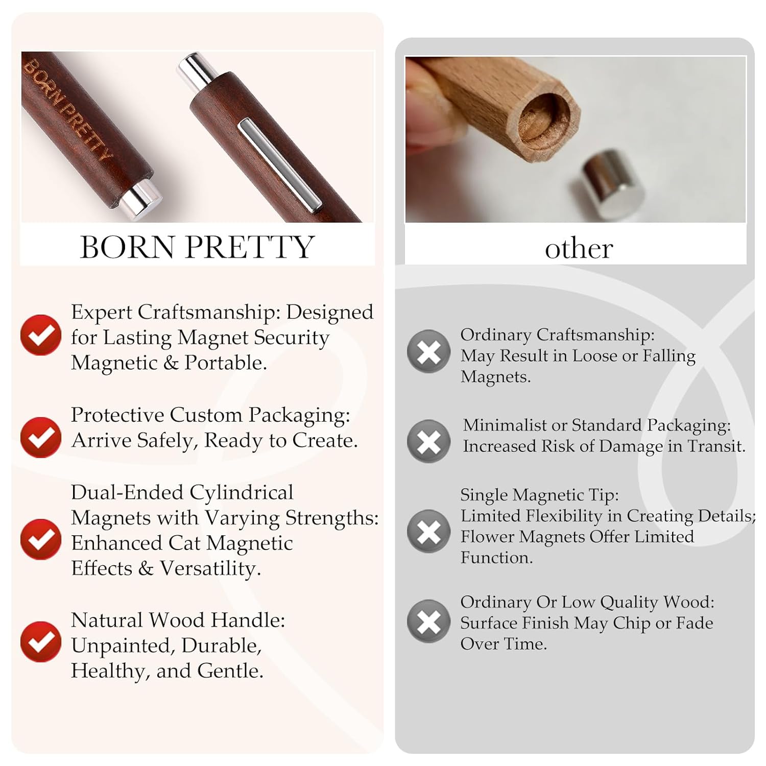 - BORN PRETTY 3-in-1 Nail Magnet --- This nail magnet features three types of magnets—round, rectangular, and floral—that can create a variety of magnetic effects, including wide cat-eye, charming black hole, French style, petal designs, and more