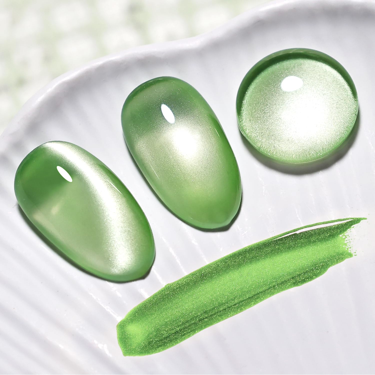 - You’ll Received:1Pcs Jelly Cat Eye Gel Nail Polish Light Green.With the built-in Magnet, you can use the magnet to create desired pattern before curing.It creates a gorgeous momentum for your nails.( Need U V Lamp)