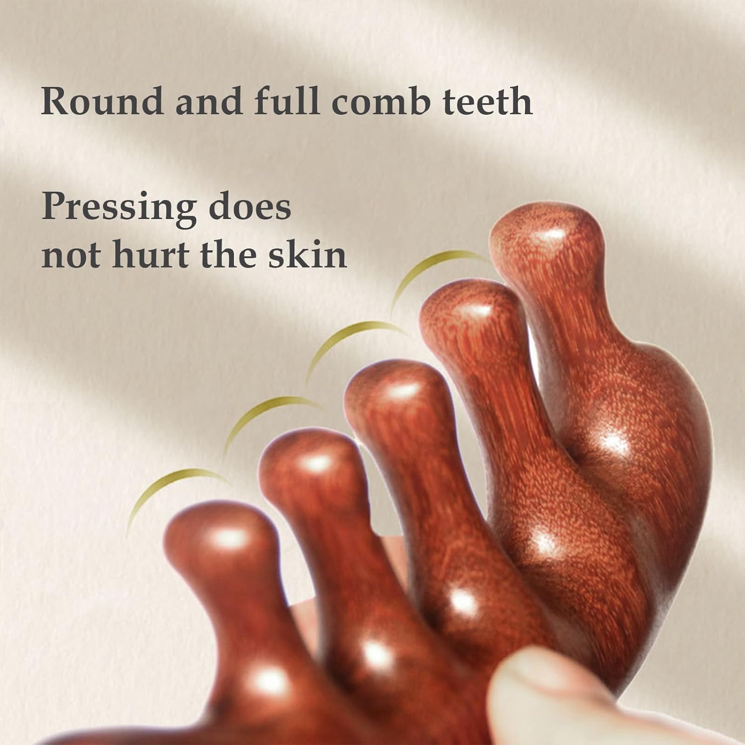 - 【Natural Sandalwood Massage Comb】Handmade from 100% natural sandalwood, featuring smooth, rounded wide teeth for a comfortable and gentle scalp experience with a subtle wood fragrance.