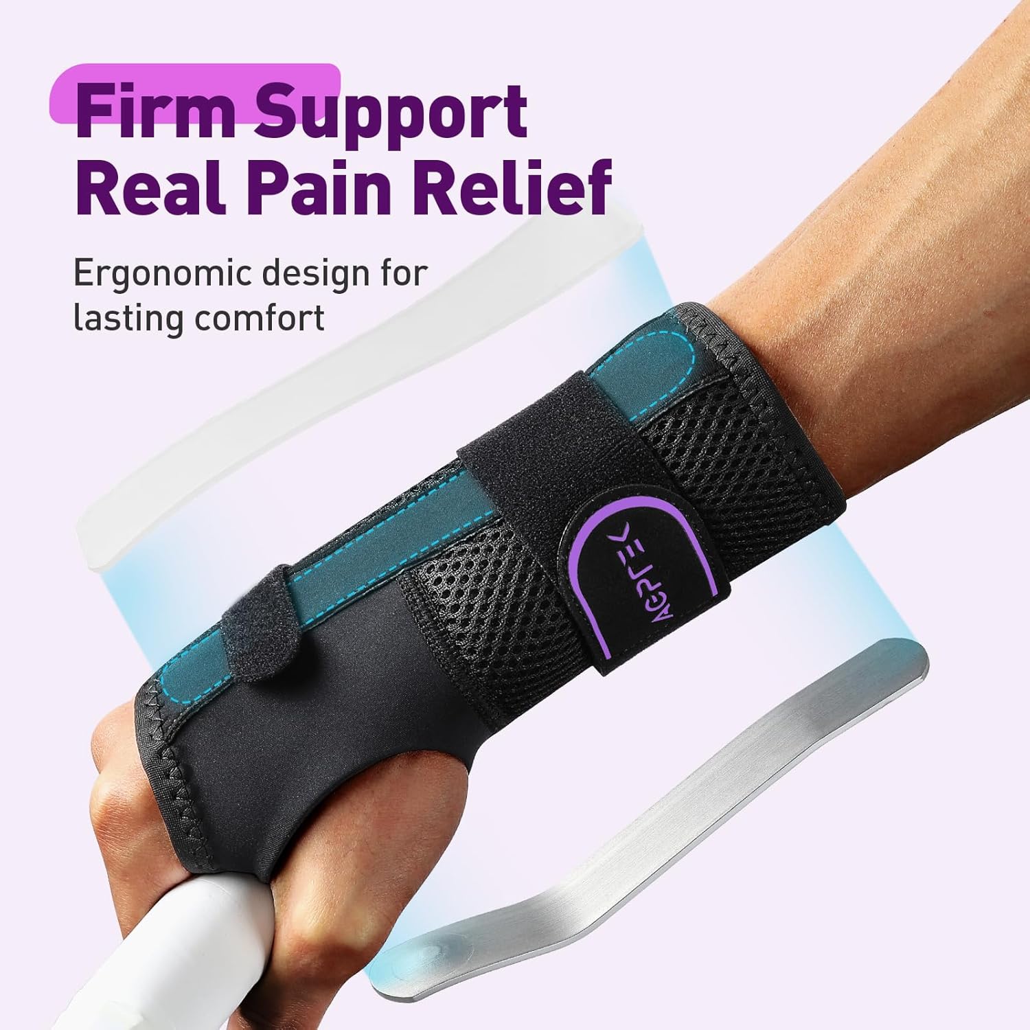 AGPTEK Carpal Tunnel Wrist Brace for Men Women, Night Sleeping Wrist Support with 2 Splints, Pain Relief Hand Brace for Arthritis Sprains Tendonitis, Adjustable Wrist Splint for Right Hand (S/M, Black & Purple)