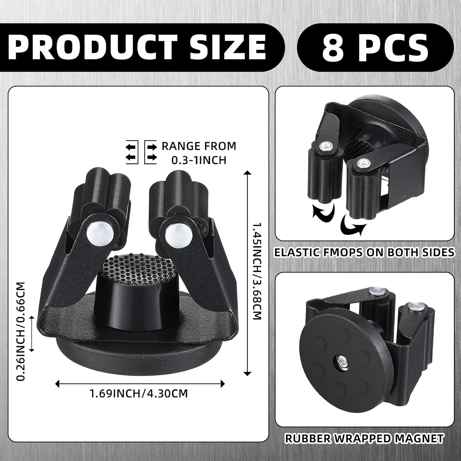 8 Pcs Magnetic Mop Broom Holder Movable Magnetic Broom Holder Rack, Anti Slip Wall Mounted Utility for Cleaning Tools, Garage, Kitchen, Laundry, Garden (Black)
