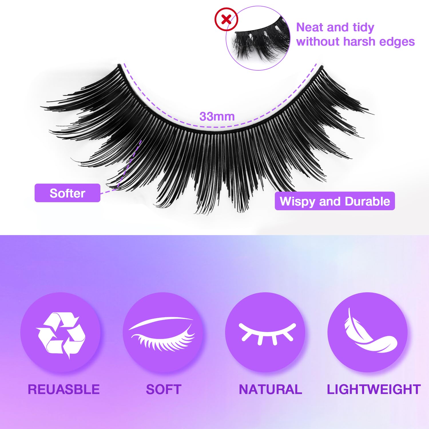 - 7 Pairs Natural-Looking Lashes Kit: Endless Beauty! Beginner-friendly false eyelashes with bond + seal + tweezer included! Achieve natural-looking wispy lashes in minutes â easy strip lashes with flexible thin band for seamless blending.