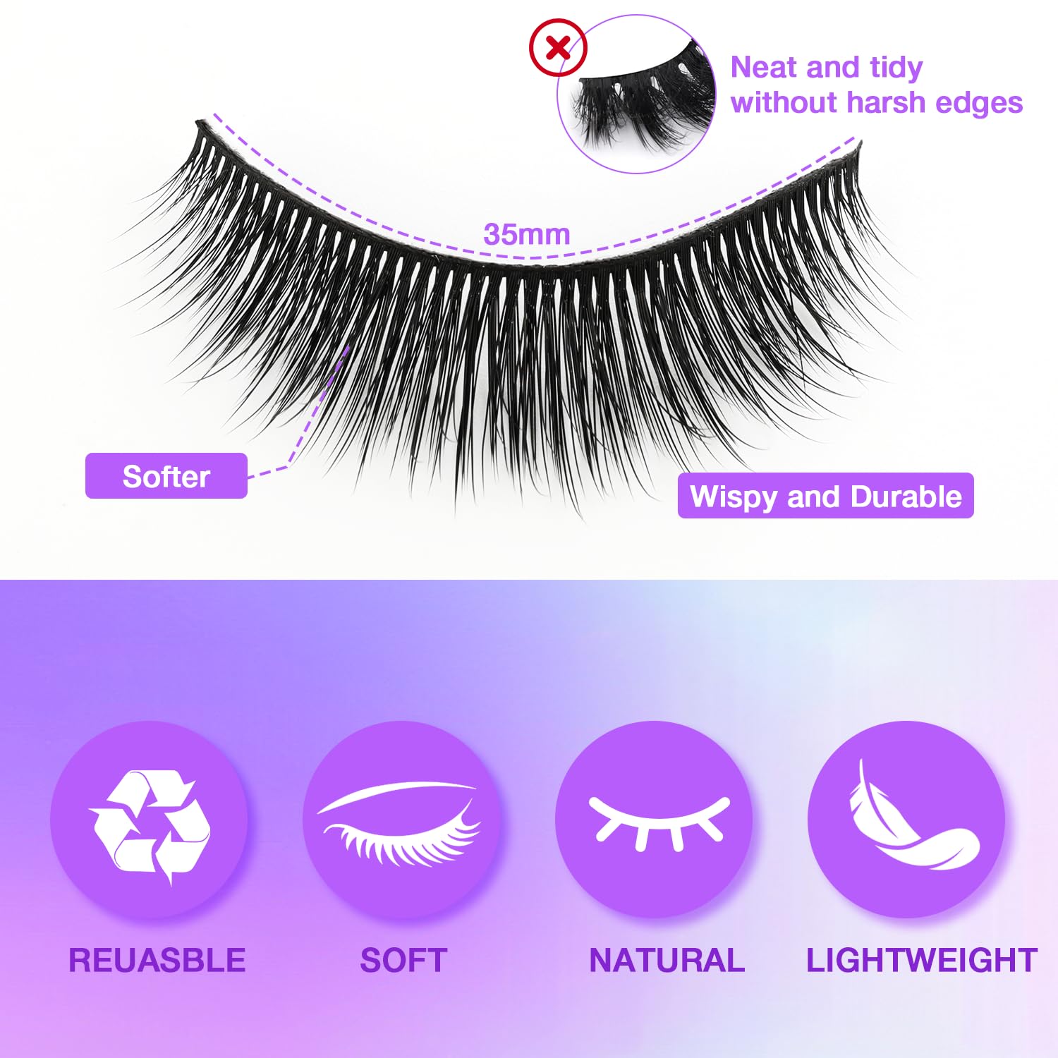 - 7 Pairs Natural-Looking Lashes Kit: Endless Beauty! Beginner-friendly false eyelashes with bond + seal + tweezer included! Achieve natural-looking wispy lashes in minutes â easy strip lashes with flexible thin band for seamless blending.