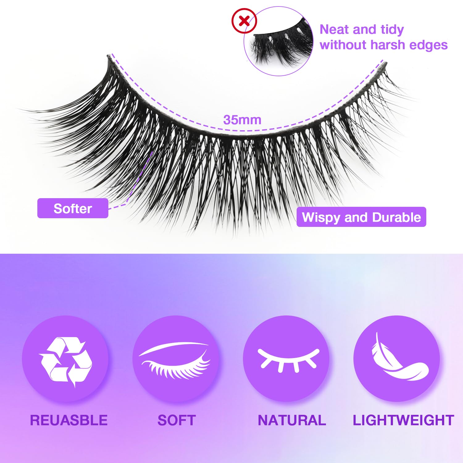 - 7 Pairs Natural-Looking Lashes Kit: Endless Beauty! Beginner-friendly false eyelashes with bond + seal + tweezer included! Achieve natural-looking wispy lashes in minutes â easy strip lashes with flexible thin band for seamless blending.