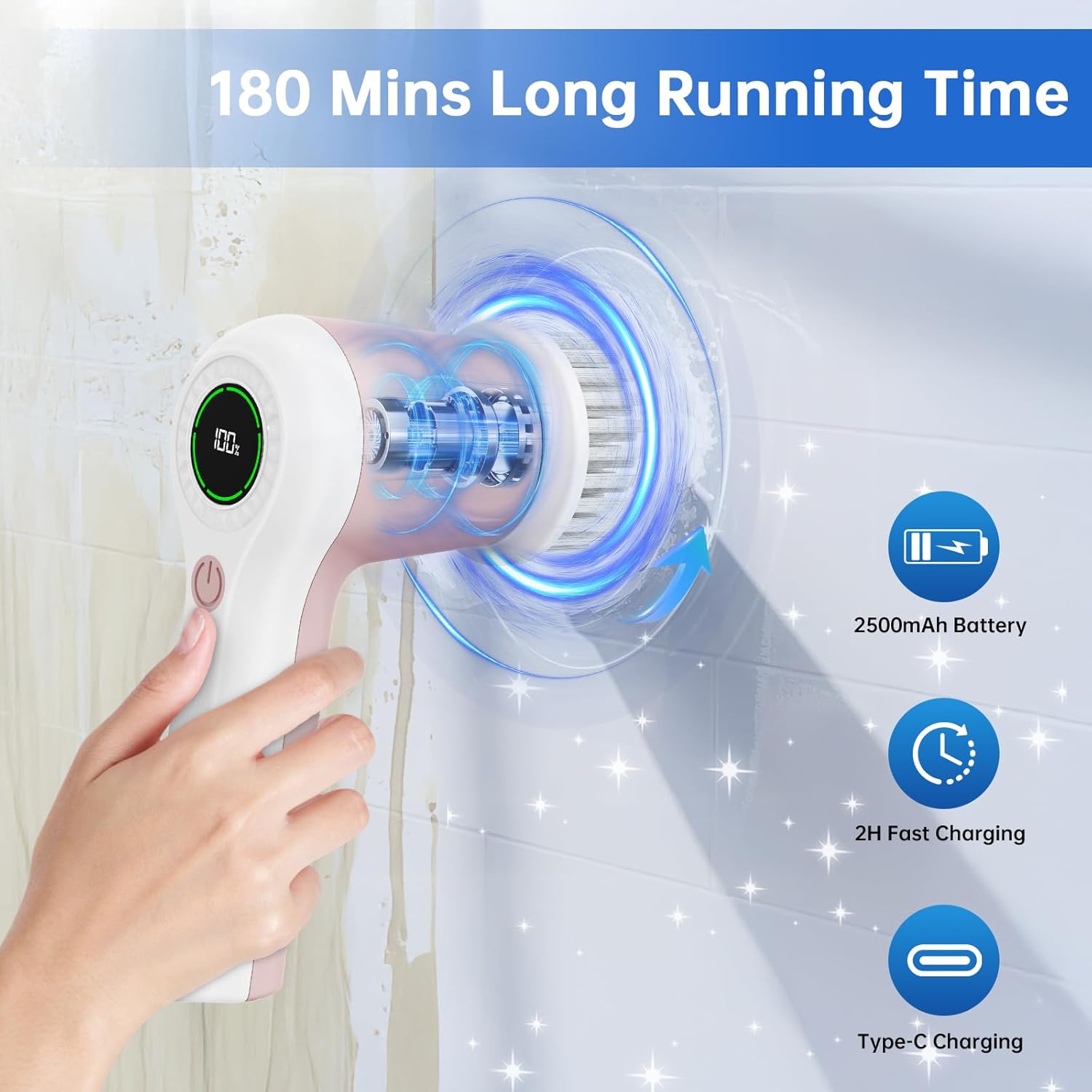 - Lightweight & IPX7 Waterproof: Cordless electric cleaning brushes with a lightweight design ensure comfortable use on your wrist, even during extended cleaning sessions. IPX7 waterproof provides you with the flexibility to use the scrubber in various environments safely. After cleaning, you can clean electric bathroom scrubber under running water, keeping the device clean and tidy.