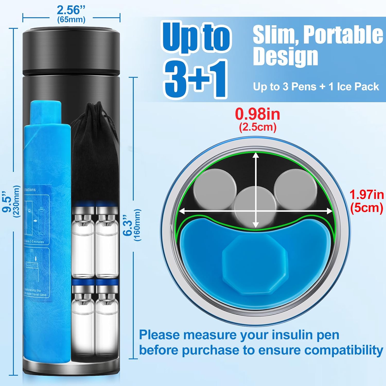 - 【60-Hour Insulin Cooler for Travel and Daily Use】 - This insulin travel case keeps your medications cool for up to 60 hours using advanced vacuum insulation and bio-gel ice packs. Ideal for long trips, outdoor activities, or extended business travel – your insulin stays effective and safe