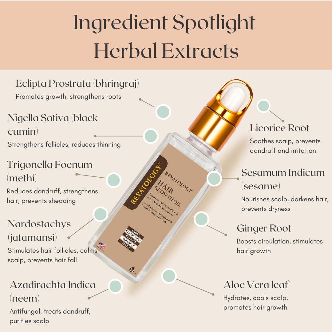 REVATOLOGY Hair Growth Oil – Extra Strength Formula with 12 Oils & 18 Herbal Extracts – Strengthens, Restores & Revives Hair – Natural, Clean, Non-Toxic