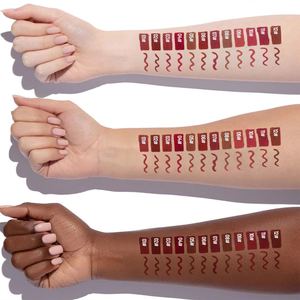 - 12 Stunning Shades Available: Choose from 12 highly pigmented, trendy colors â from soft nudes to bold reds â to match every mood, occasion, and skin tone.