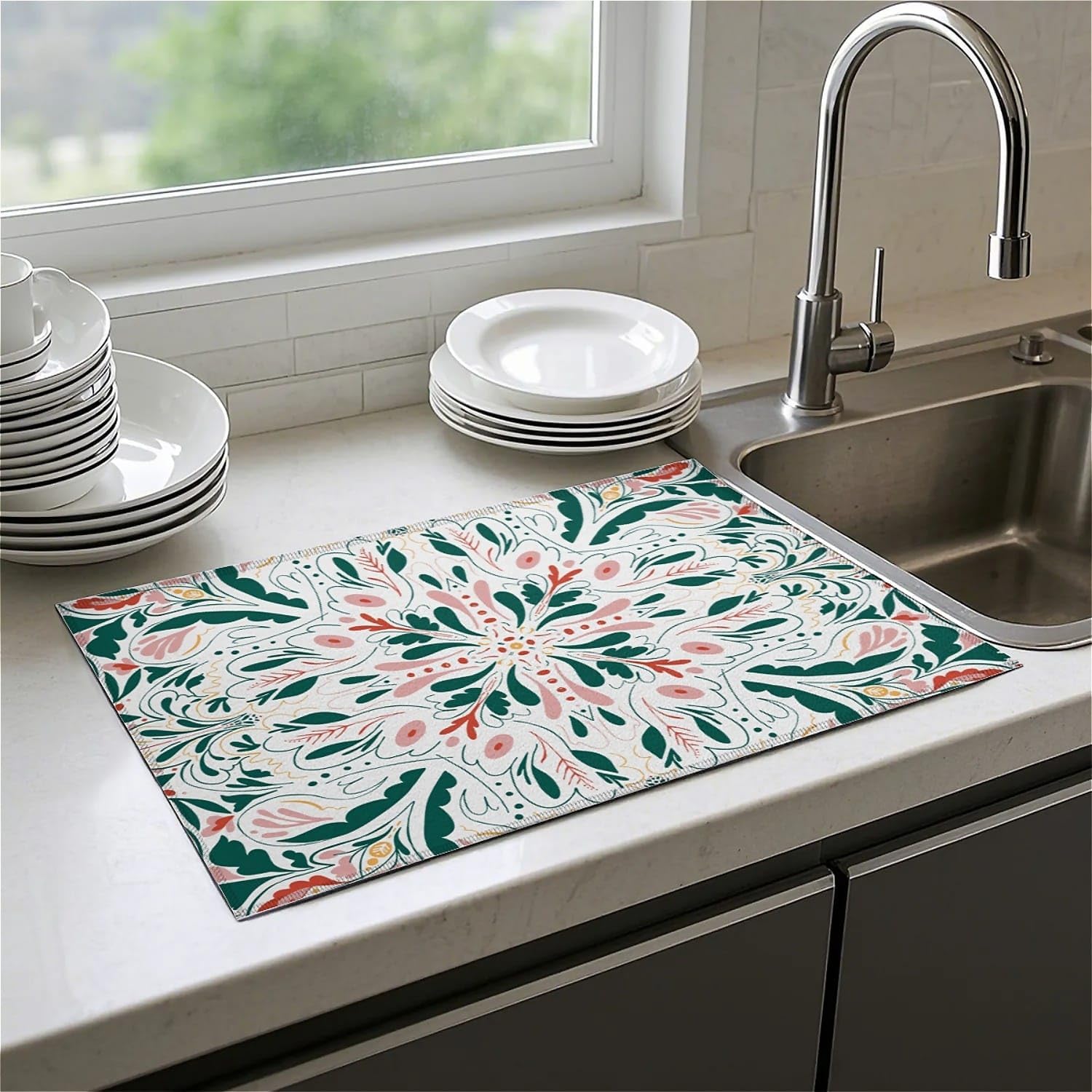 - 【Lovely Home Gift】This beautiful decorative dish drying mat for kitchen countertops will surprise your family and friends, a perfect housewarming gift for a new home or renovation, and a perfect gift for Christmas, Mother's Day, birthdays, Thanksgiving, and various other occasions