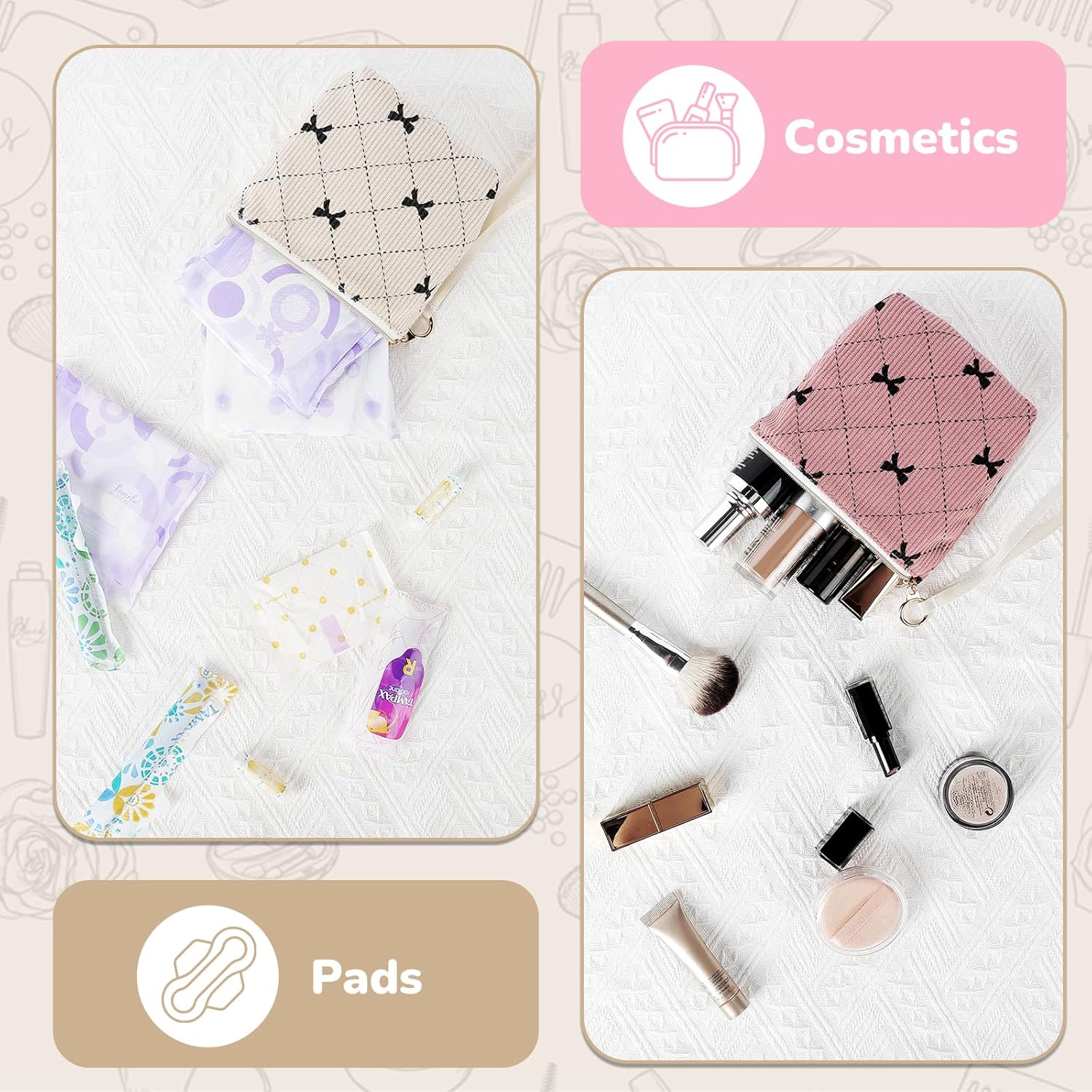 - 【Multifunctional】The menstrual pad pouch not only for storing sanitary napkins and disposable pads, but also perfect for daily use or travel essentials, easy to pack and carry cosmetics, jewelry, sanitary napkins, small electronic accessories, toiletries, medications, lipstick, first aid kits, band-aids, lip balms, cosmetics, mini mirrors, keys, cash, credit cards, etc