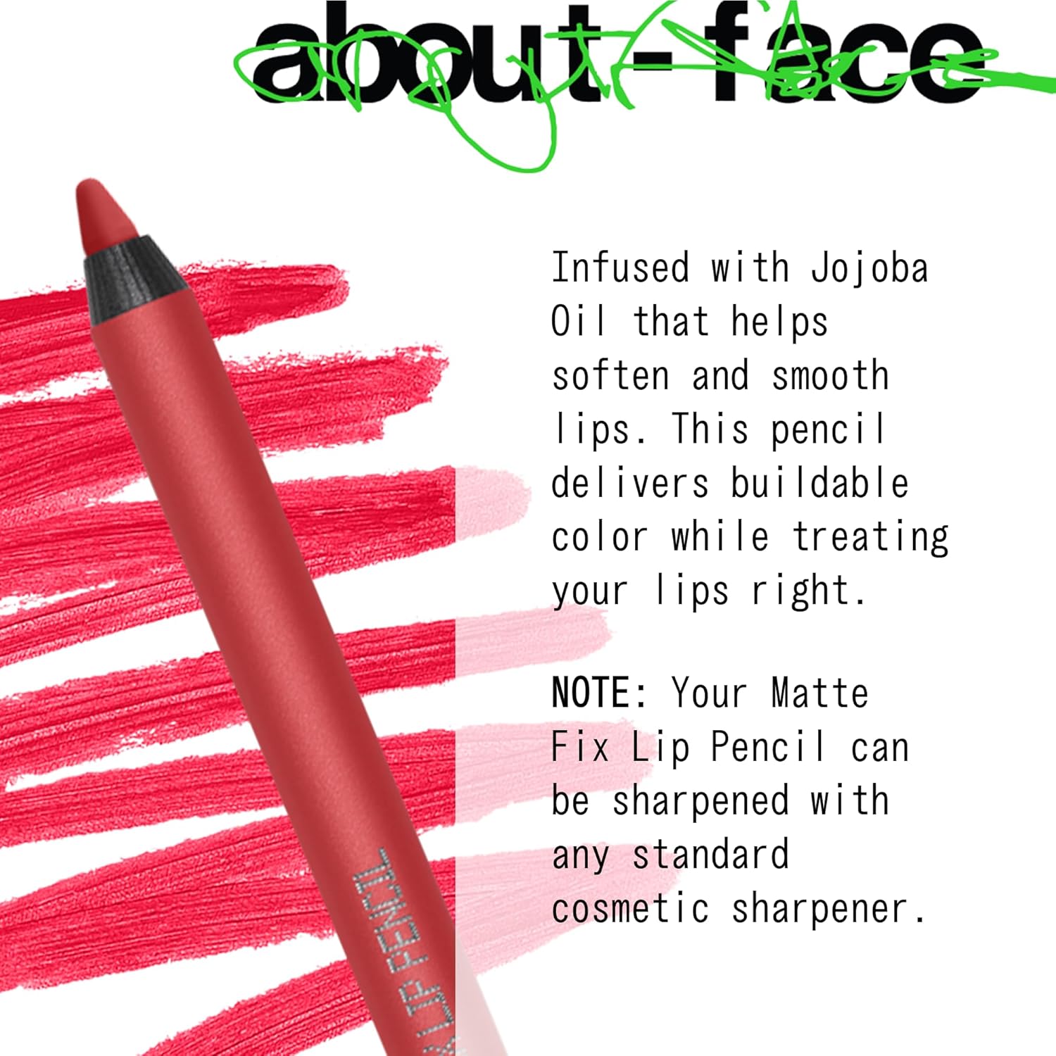about-face Matte Fix Lip Pencil Sound The Alarm – Long-Wear, Creamy Matte Lip Liner with Hyaluronic Acid & Vitamins C & E – Vegan, Cruelty-Free, Clean Beauty – 0.042 oz (Bright Cherry Red)