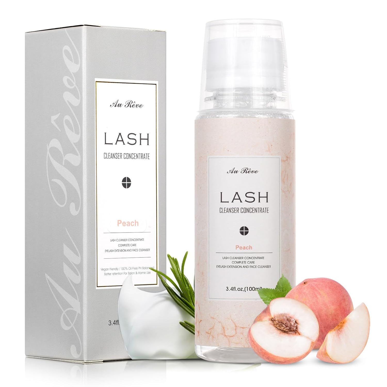 Lash Shampoo Concentrate 100ml Lash Extension Cleanser Oil-Free Eyelash Extension Shampoo with Salon Home Care -Makes 20 Bottles 60ml Lash Shampoo,Peach