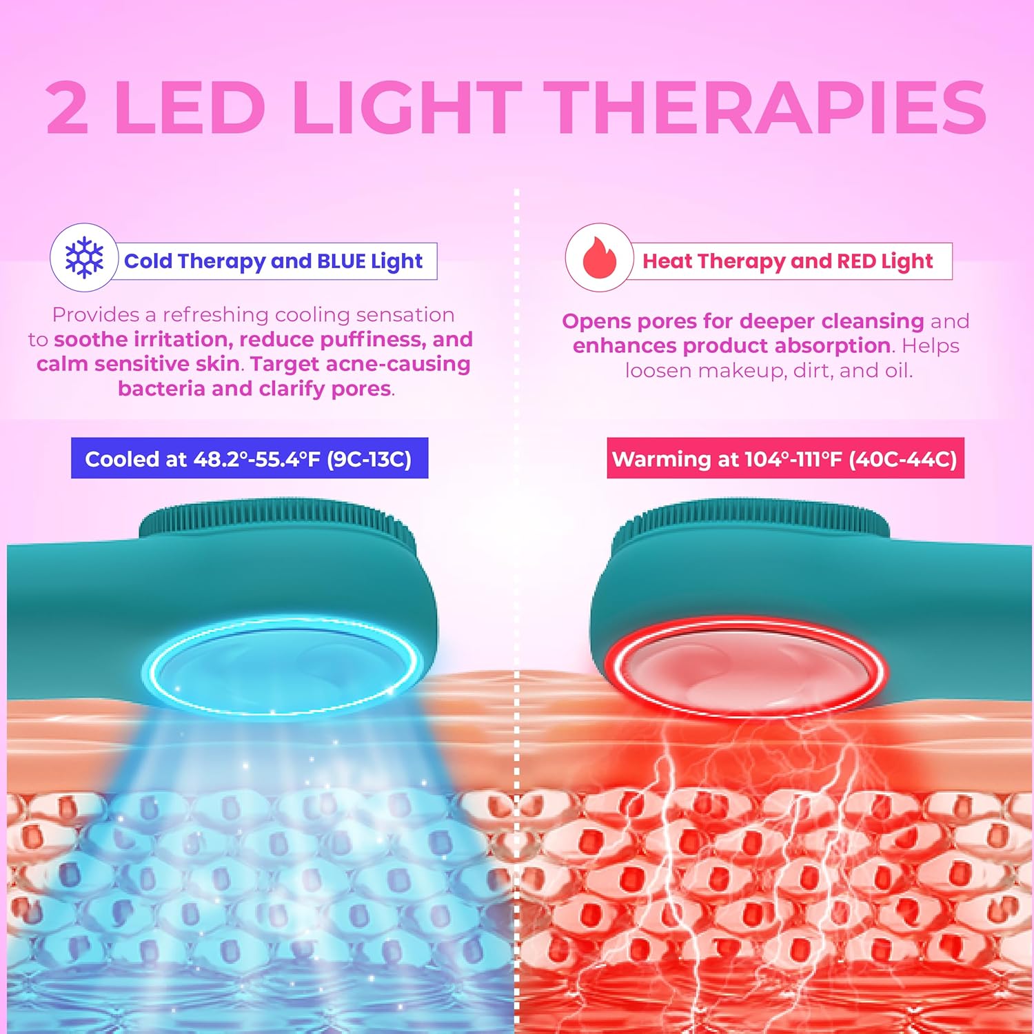- Dual-Sided Design for 2-in-1 Skincare - Get the best of both worlds with the RIKI LOVES Silicone Facial scrubber. One side features fine, soft silicone bristles (in two sizes) for deep cleansing and gentle exfoliation. The other side delivers Heating, Cold Compress, and LED light therapy for a soothing spa experienceâall in one stylish device.