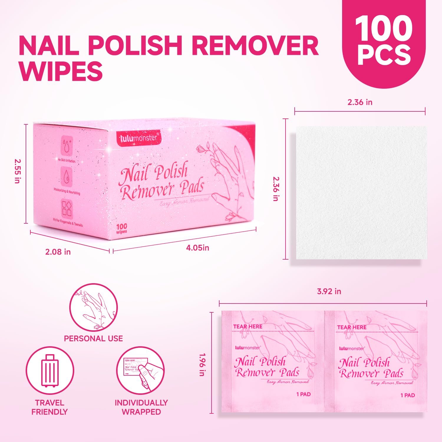 - 【 Non-Toxic Nail Polish Remover 】The LULUMONSTER nail polish remover wipes are individually packaged and fully soaked with nail polish remover, making them easy to use. Nail polish remover pads effectively remove polish without causing damage or dryness, perfect for sensitive skin