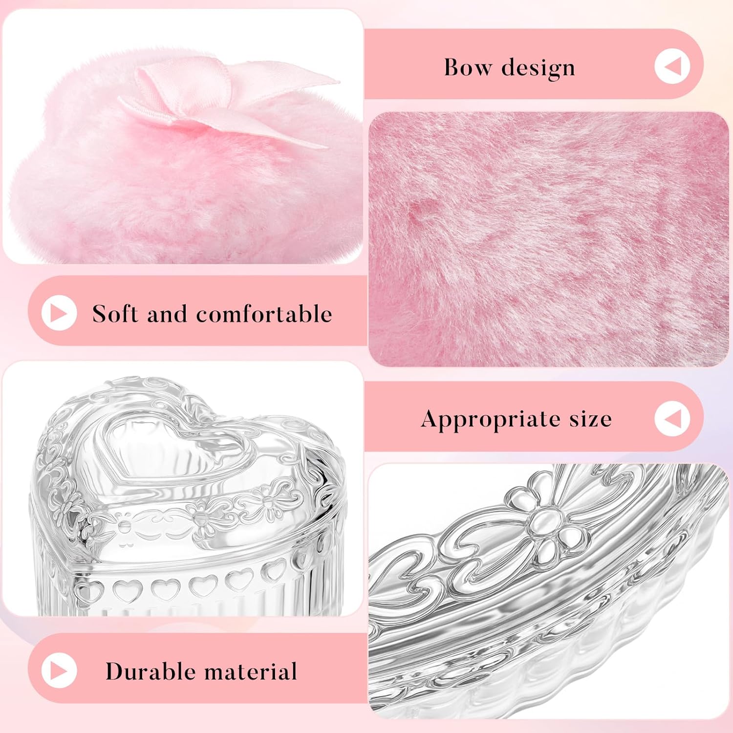 Tioncy 3 Pcs Large Body Powder Puff and Powder Container with Puff Crystal Container Soft Washable Reusable Velour Face Body Glitter Wet Dry Makeup Heart (Clear)
