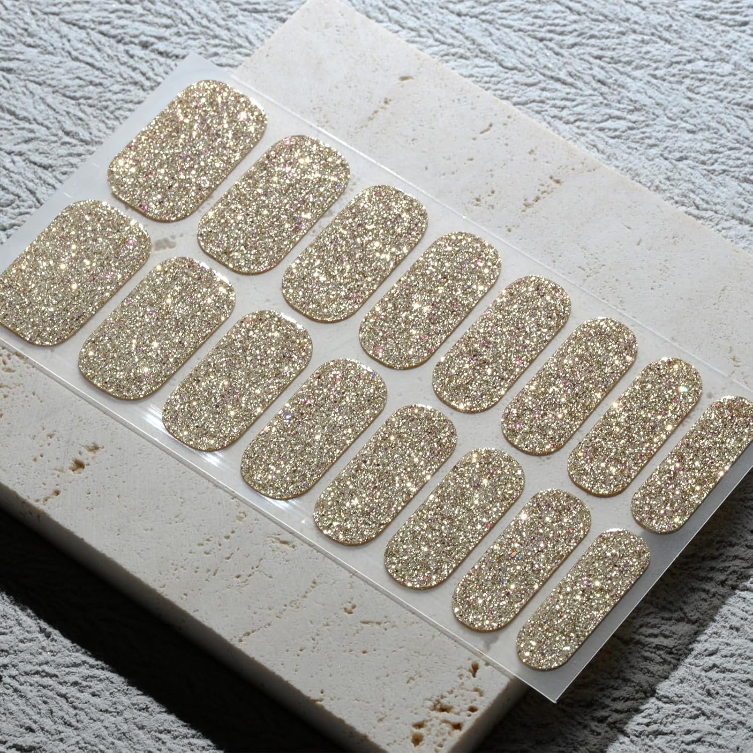 Nail Polish Strips, 32PCS Salon Quality Wraps, Long Lasting Gel Nail Stickers for Women Easy Apply& Remove (Golden Hours Glitter)