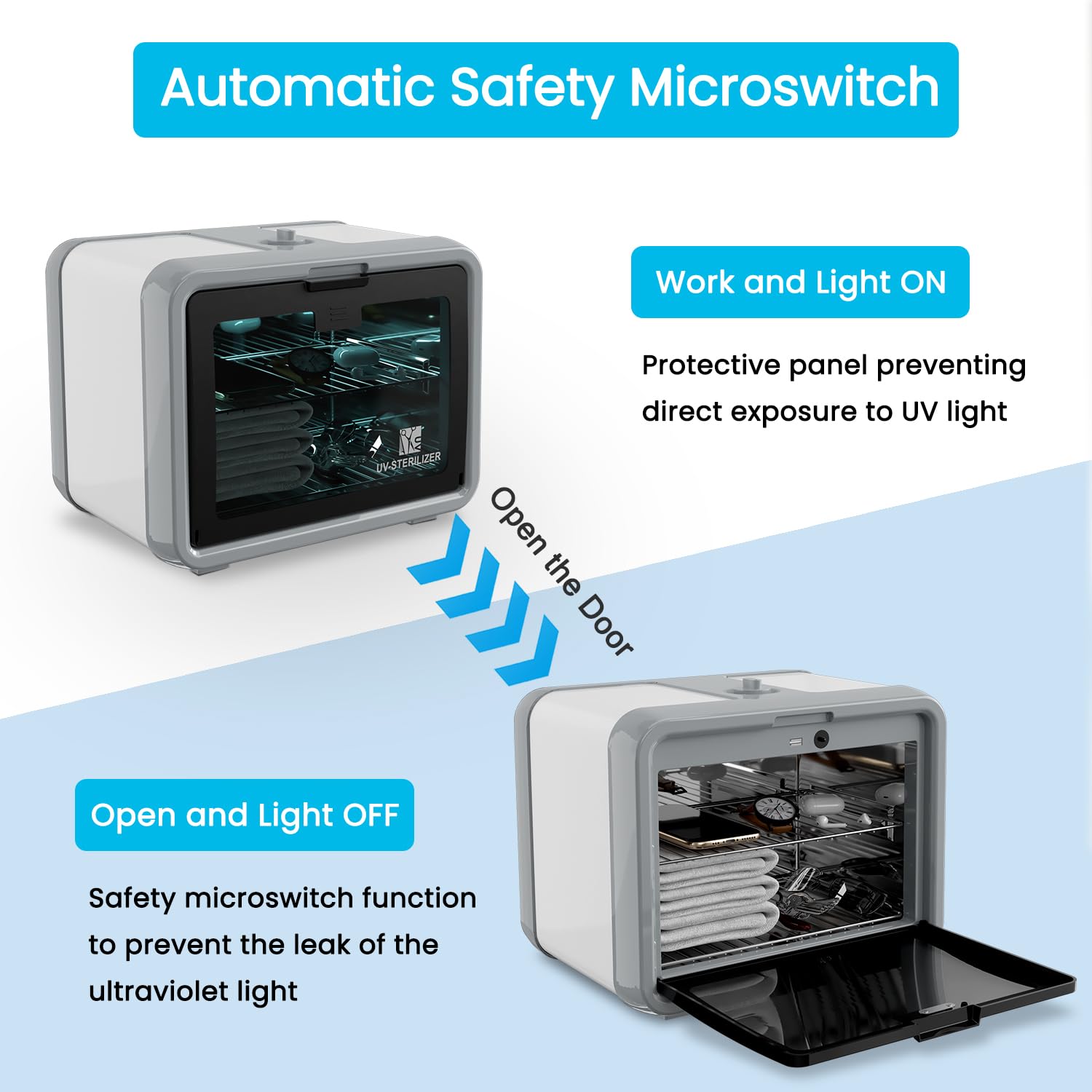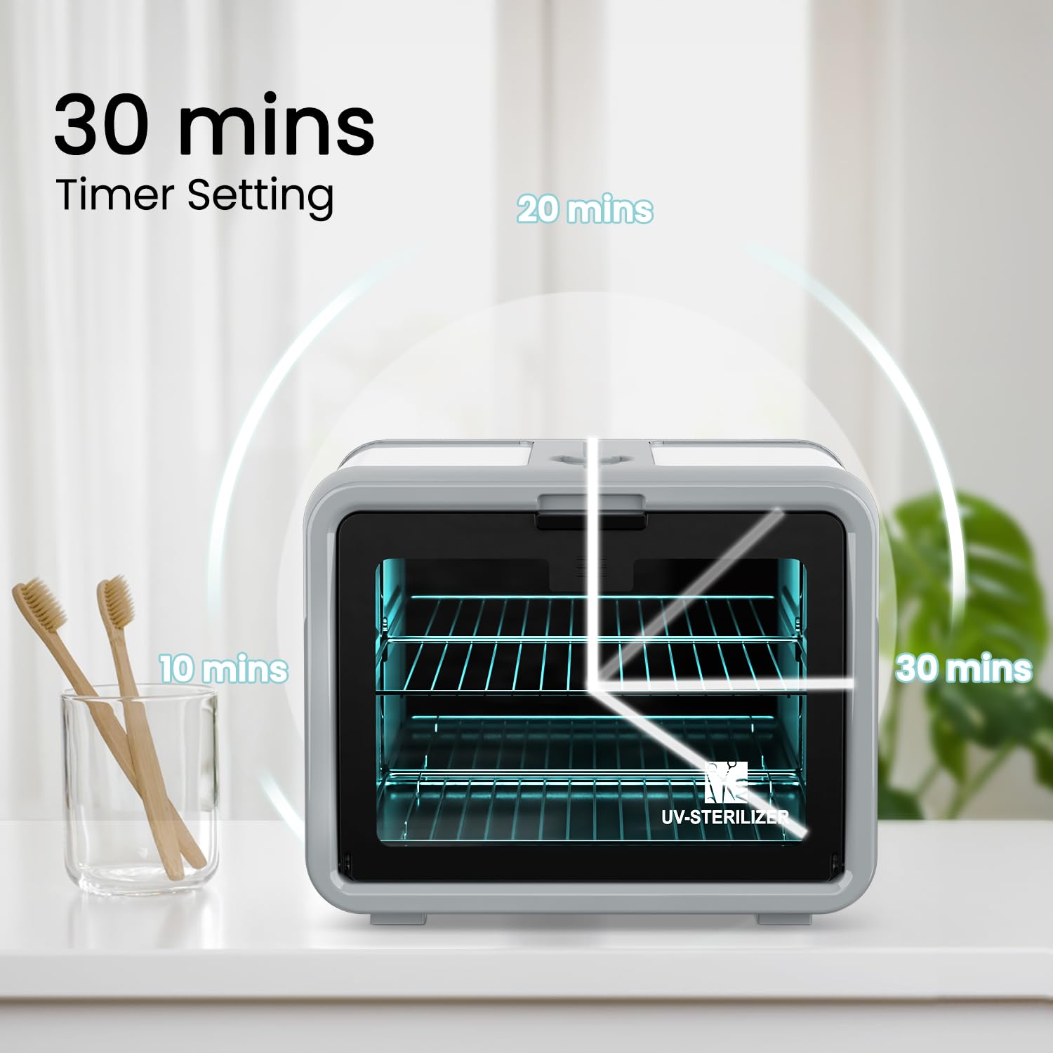- Easy Operation: It's very easy to use the sanitizer box with the rotary button. The 2-in-1 switch with timer can be set from 0 to 30 mins