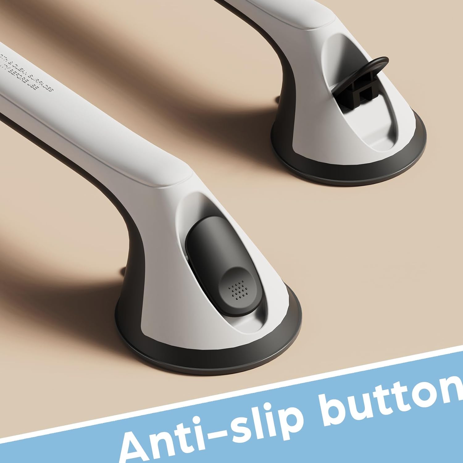 - IMPORTANT NOTE:Only suitable for tiles measuring 4×4 inches or larger. please pay attention that the suction grab bars for shower ONLY sticks on smooth and non-porous AIRTIGHT walls which are NOT air-permeable like metal, glass, tile, marble, stainless steel and acrylic but does NOT apply on uneven tile, wallpaper, dry wall, porous wall, painted wall,etc. Please don't put all the body on the shower grip,handicap grab bars are only used to assist and properly support part of body weight.