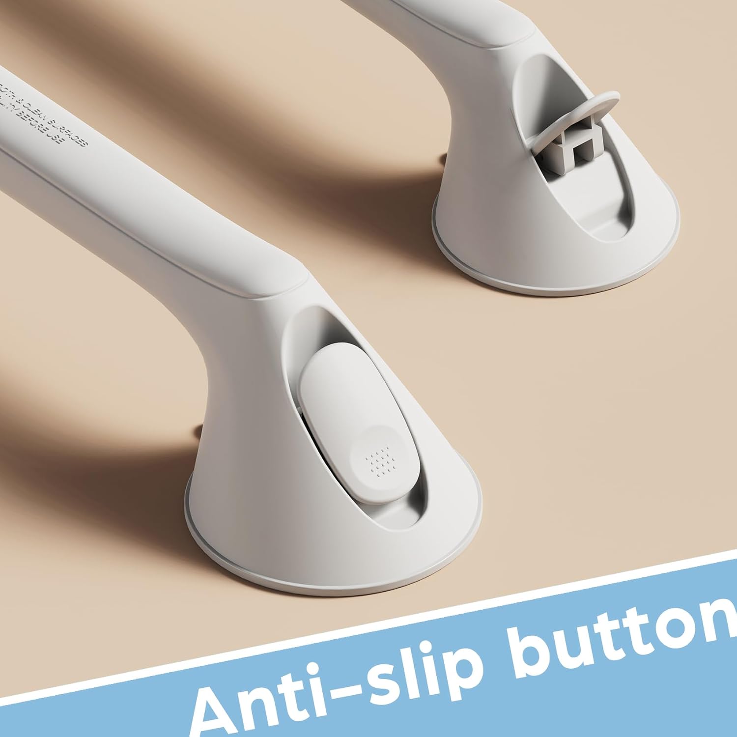 - IMPORTANT NOTE:Only suitable for tiles measuring 4×4 inches or larger. please pay attention that the suction grab bars for shower ONLY sticks on smooth and non-porous AIRTIGHT walls which are NOT air-permeable like metal, glass, tile, marble, stainless steel and acrylic but does NOT apply on uneven tile, wallpaper, dry wall, porous wall, painted wall,etc. Please don't put all the body on the shower grip,handicap grab bars are only used to assist and properly support part of body weight.