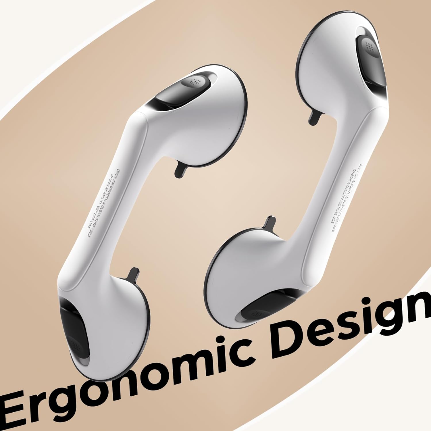 2 Pack 12 Inch Grab Bars for Bathtubs and Showers for Seniors, Heavy Duty Shower Handle for Elderly, Suction Cup Removable Handrails Handicap Bath Grip Bathroom Safety Grips (White and Black