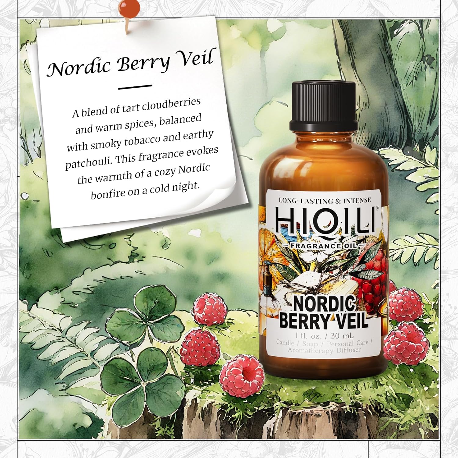 HIQILI Nordic Berry Veil Fragrance Oil for Home Diffuser, Candle & Soap Making Supplies, Luxury Hotel Scent, Essential Oil - 1 Fl Oz