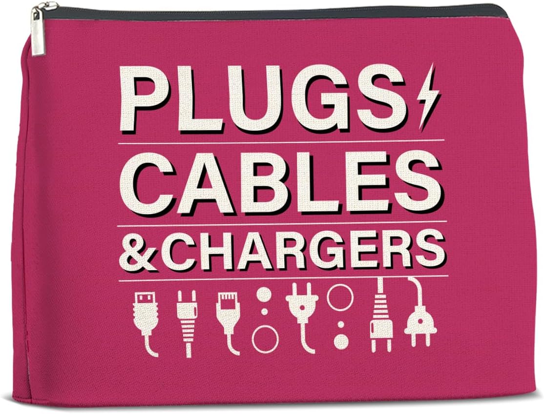 Pink Charger Storage Makeup Bag Gifts for Women Cosmetic Bag Zipper Pouch for Travel Vacation Business