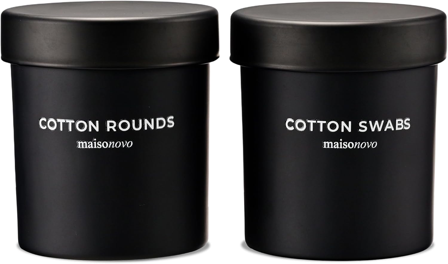 MaisoNovo Qtip Holder Bathroom Set – Airtight Glass Qtip Holder with Lid to Store Q Tips, Cotton Rounds, Cotton Balls, Floss Picks, Hair Ties with free labels pack - 2 Black Jars with Glass Lids