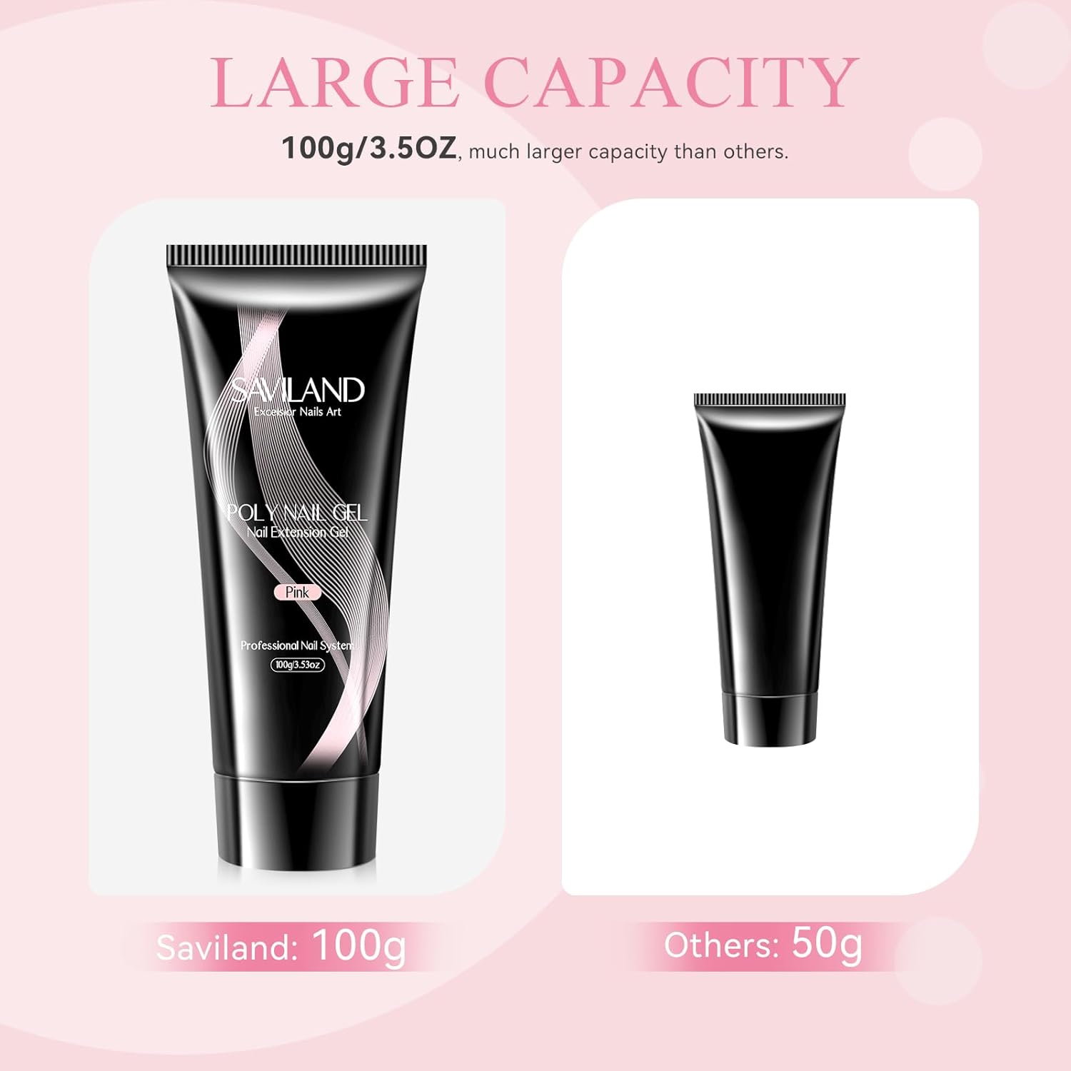 - đˇ SAVILAND BIG POLY NAIL GEL-Saviland 100g/3.5oz pink poly extension gel with popular classic color, can do nail extension, poly gel nails, nail enhancement, nail art, stick sequins or decorations, etc. 100g super large capacity, valuable, and long service life. It is very suitable for professional nail salons and nail lovers who often make extension. Can mix with other colorful gel to create various and attractive nail art.