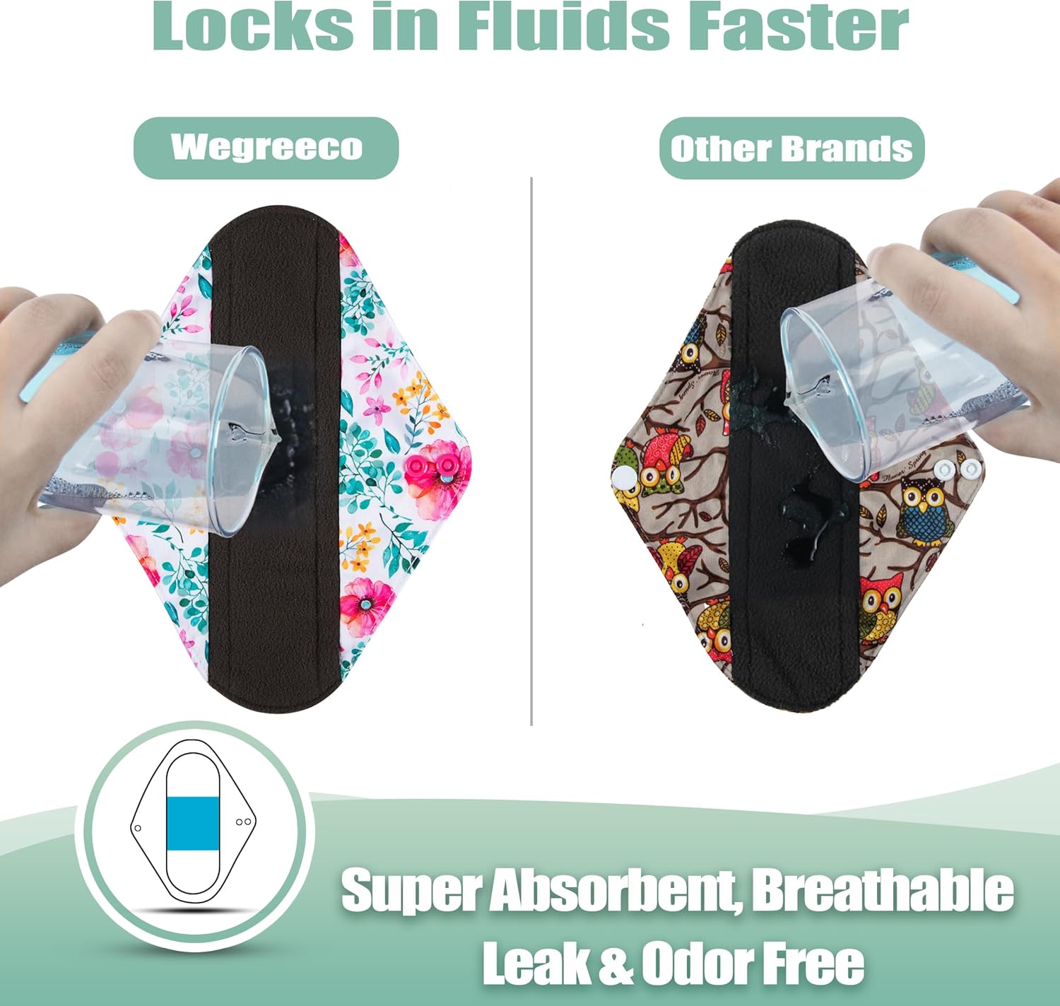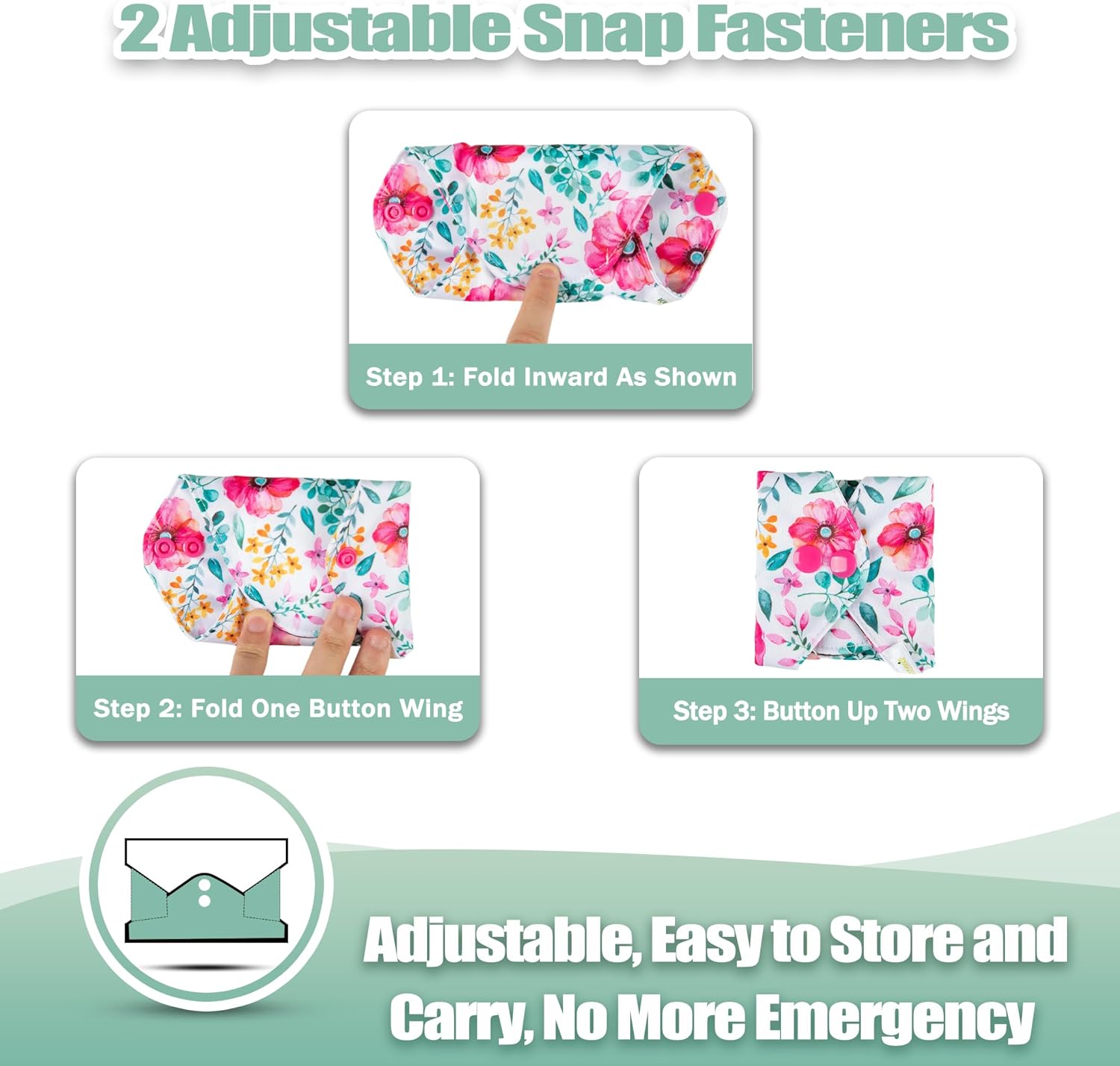 - LOVELY PRINT leak-free outer of Cloth Sanitary Napkin and comfort of the softer, charcoal layer against your skin; Great as period panties too; Fold over and snap into place; Never feel embarrassing