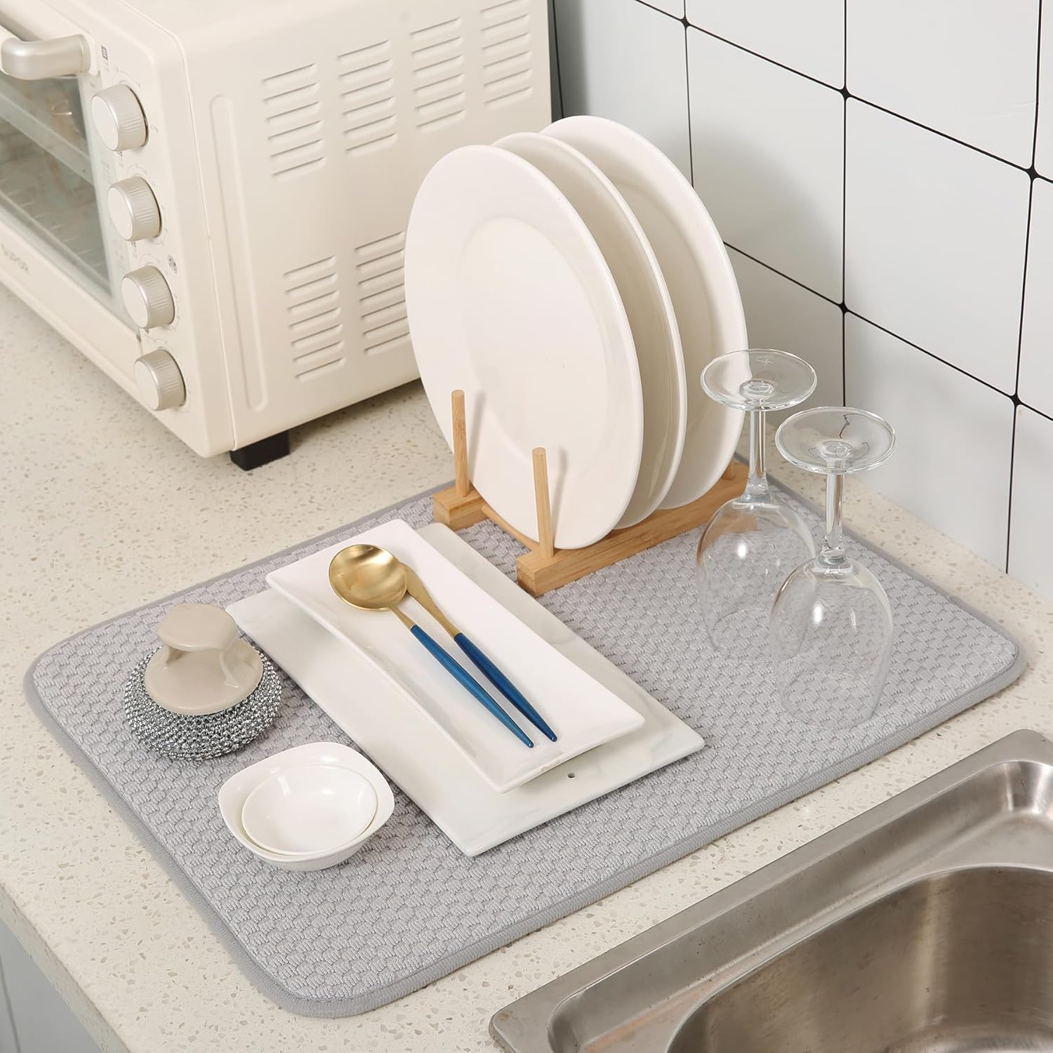 2 Pack Microfiber Dish Drying Mat for Kitchen Counter,Ultra Absorbent Dish Drainer Mat ,Dish Drying Pad , Dish Rack Mat 20×15 Inch (Silver Gray)