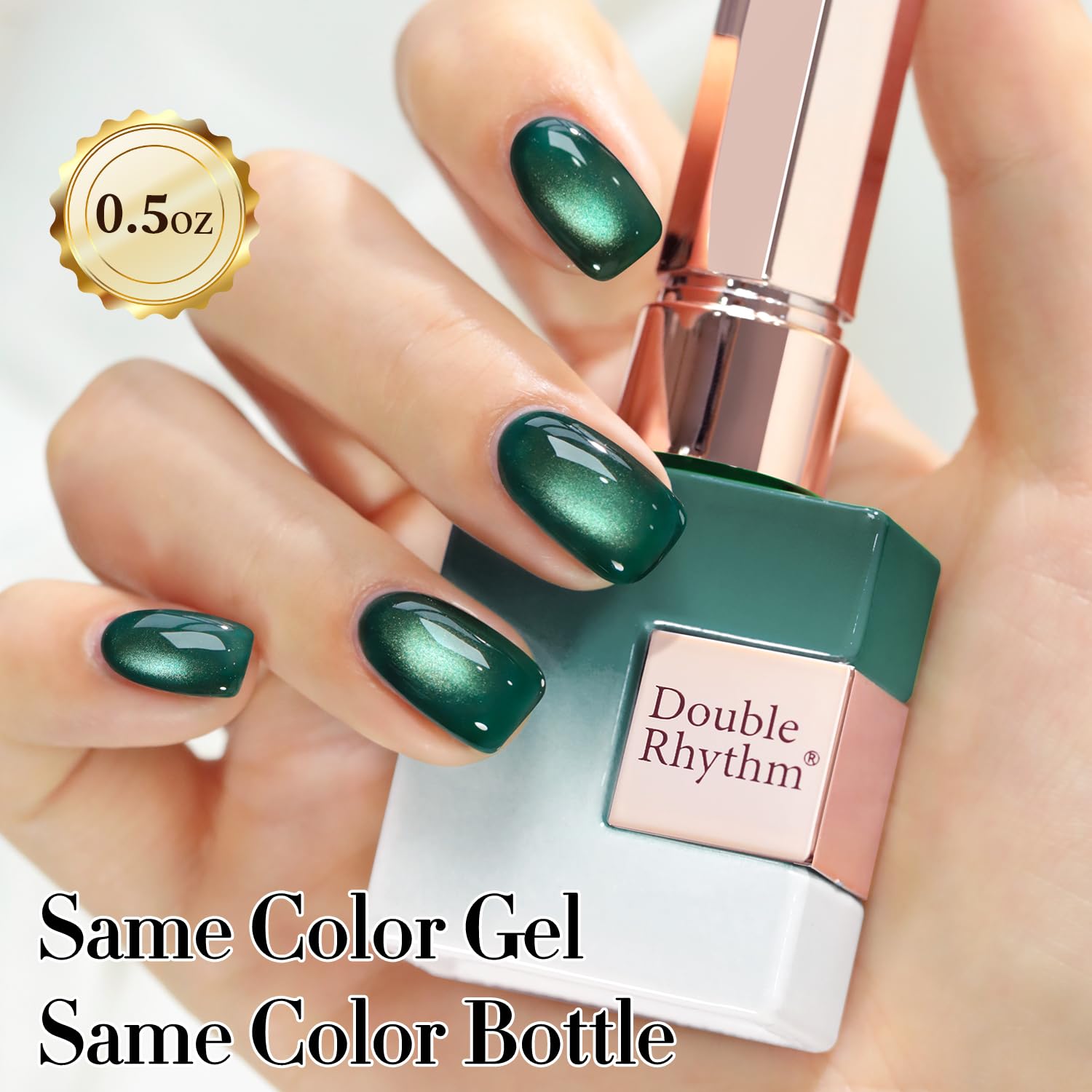 Double Rhythm 0.5 OZ Cat Eye Gel Polish with Magnet 15ML Holographic Glitter Shimmer Translucent Jelly Color Magnetic Nail Polish Salon DIY at Home (Winter Green-MC1275)