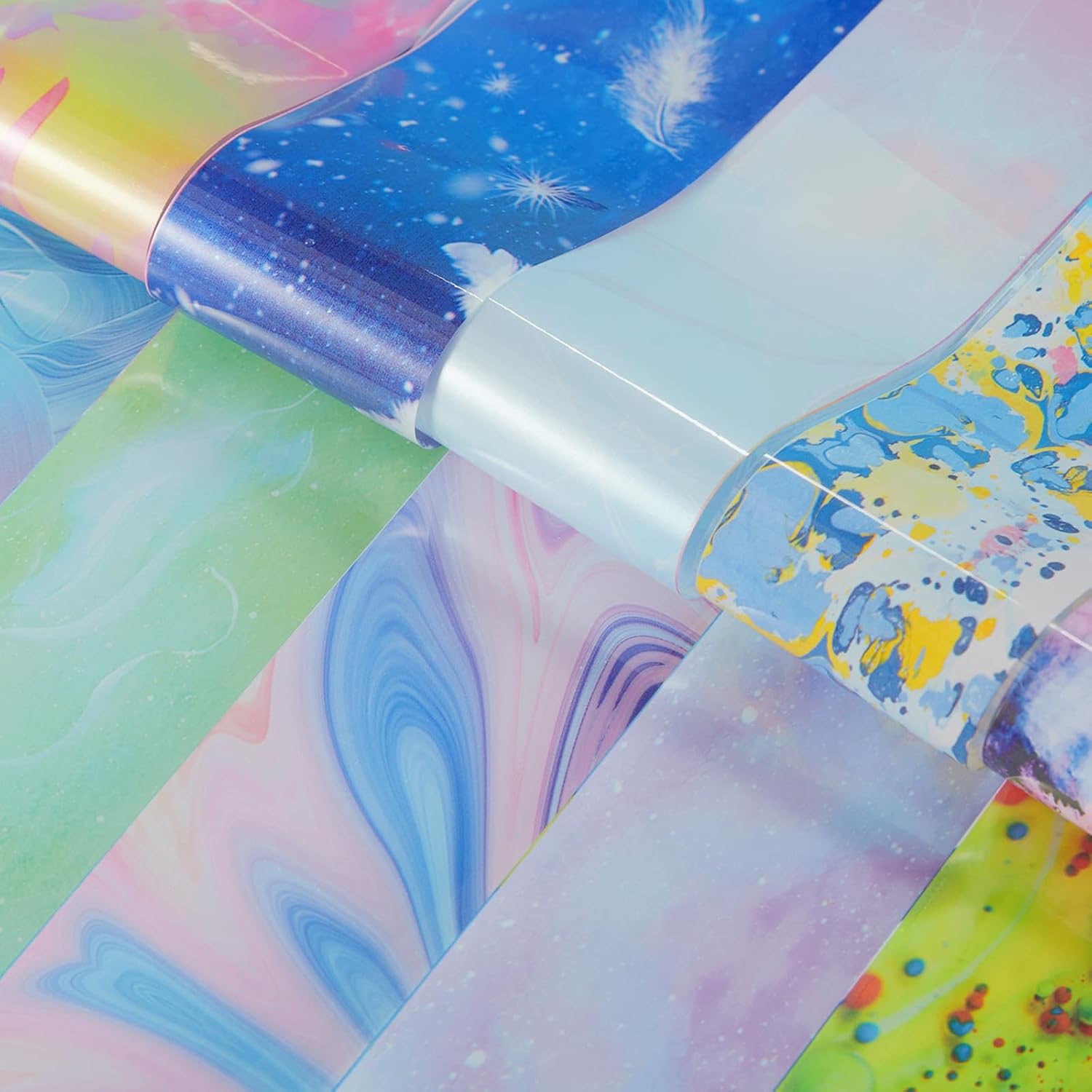 - Various Colors and Patterns - These nail foil transfer stickers include various colors and different patterns of marbling, starry sky, leopard print, aurora iridescence, gradient etc. Different colors and designs of nail art transfer stickers offer you more choices and satisfy your different needs. Nail foil sheets meet with all the fashion and never out of style with beautiful and shinning color.