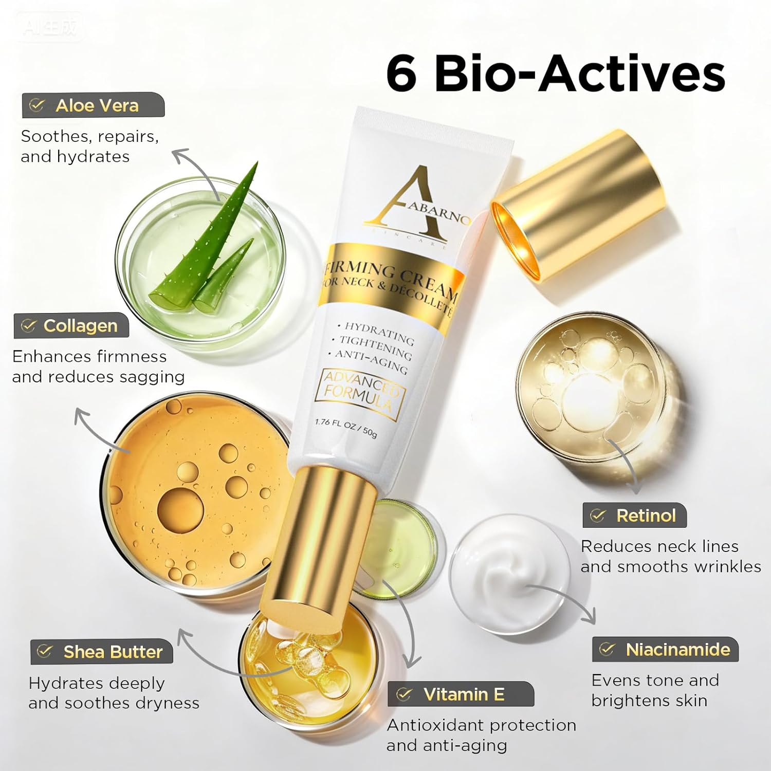 - abarno Neck Firming & Tightening Cream features a powerful firming and tightening formula, improving sagging skin and fine lines for a firmer, smoother neck area.