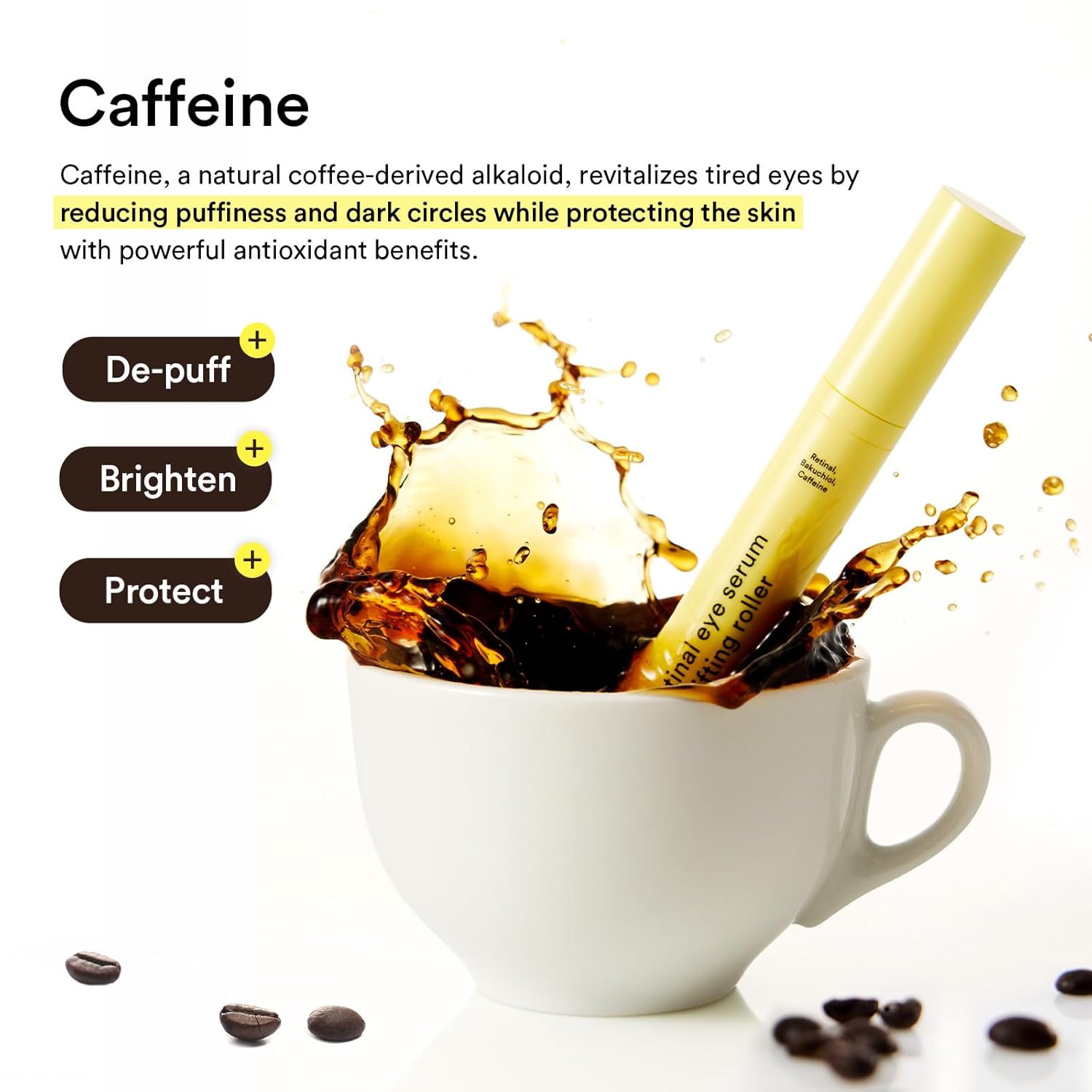Abib Retinal Eye Serum Lifting Roller 0.5 Fl Oz,15ml | Anti-Aging Eye Applicator for Wrinkles, Puffiness, Dark Circles with Caffeine & Bakuchiol for Under Eyes | Travel Size Skincare Essential