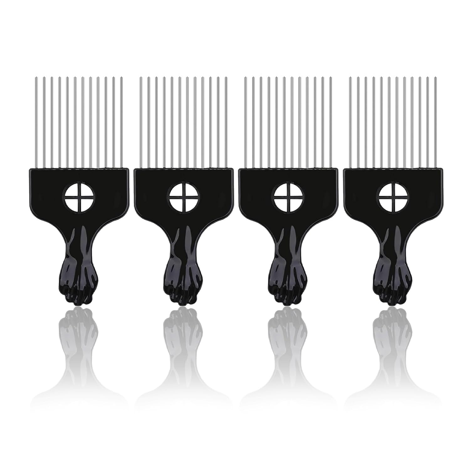 4Pcs Afro Picks Metal Hair Combs, Steel Teeth Hair Pick for Curly, Coily, Natural Hair, Detangling, Styling Comb for Men Women (Black)