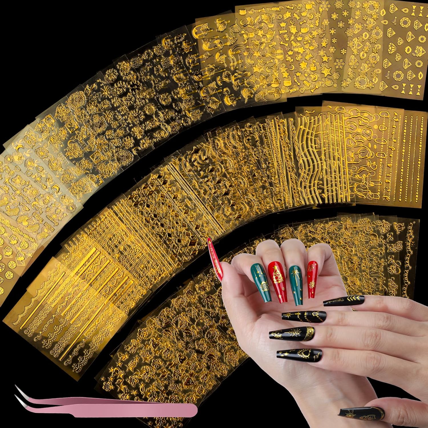 - Enjoy Your Nail Art Design Time: Teenitor 50 sheets gold nail stickers contains all kinds of classic patterns, a great fall nail stickers kit, these gold pattern is elegant and luxurious, suitable for Fall Nails, Winter Nails, Spring Nails, and Even Summer Nails Style Designs, a great nail supplies to share with your family or friends, letâs start our DIY Nail Art Design and create personalized nail designs