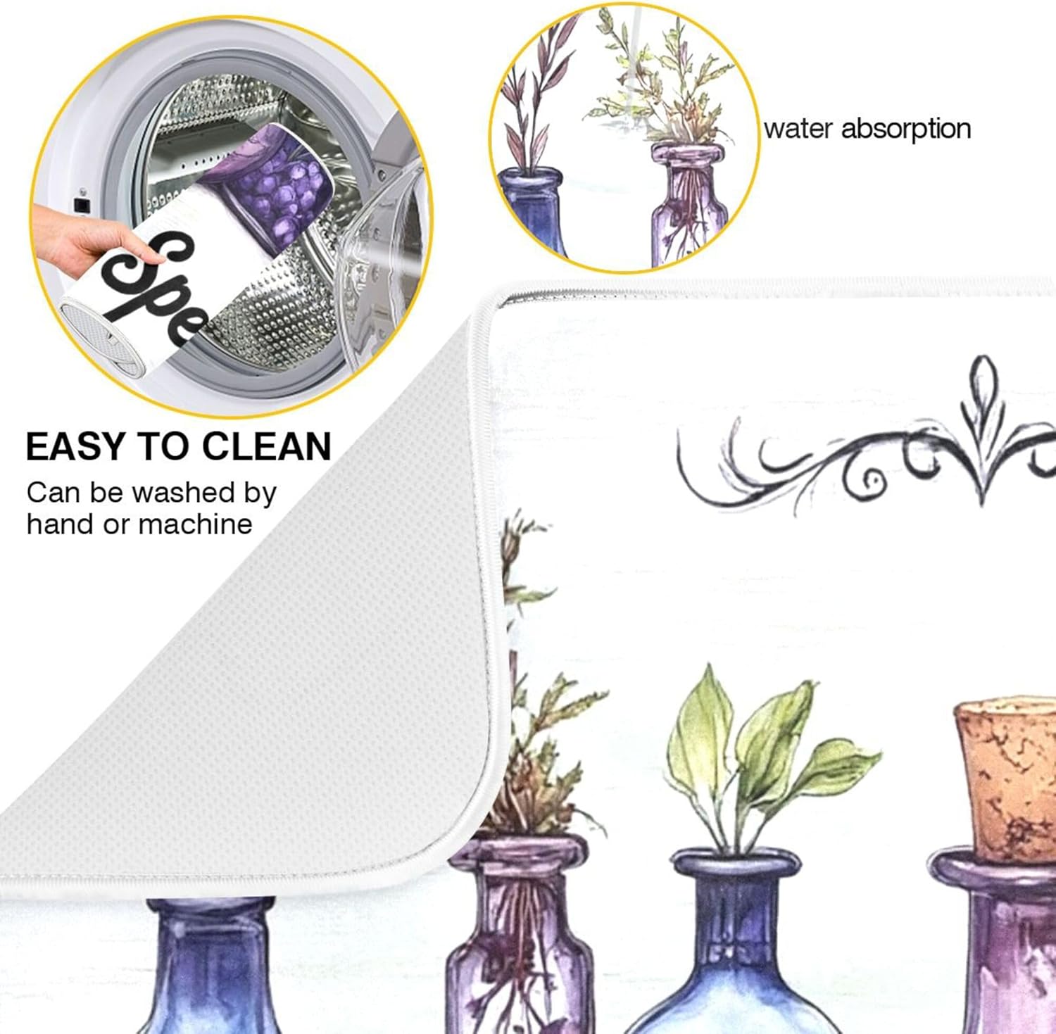 Halloween Potions Dish Drying Mat for Kitchen Countertop 16x18 Witch Herbs Purple Spooky Small Drying Mat Reusable Quick Dry Dish Sink Mats Easy Clean Decorative Essentials