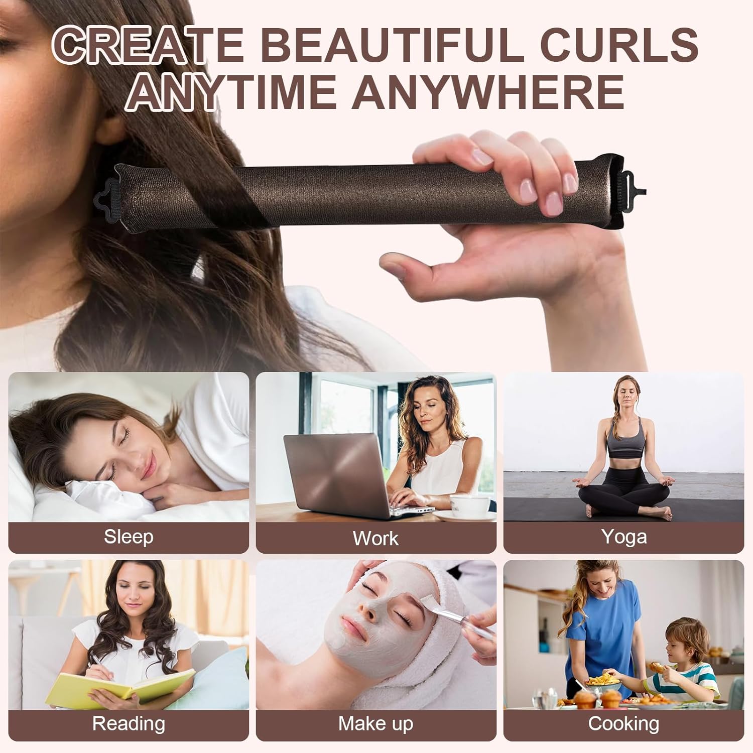 4 PCS Heatless Hair Curler Set - Overnight Use Curling Rods with Silk Scarf for All Hair Types, No Heat Natural Waves Curls without Damage, Brown